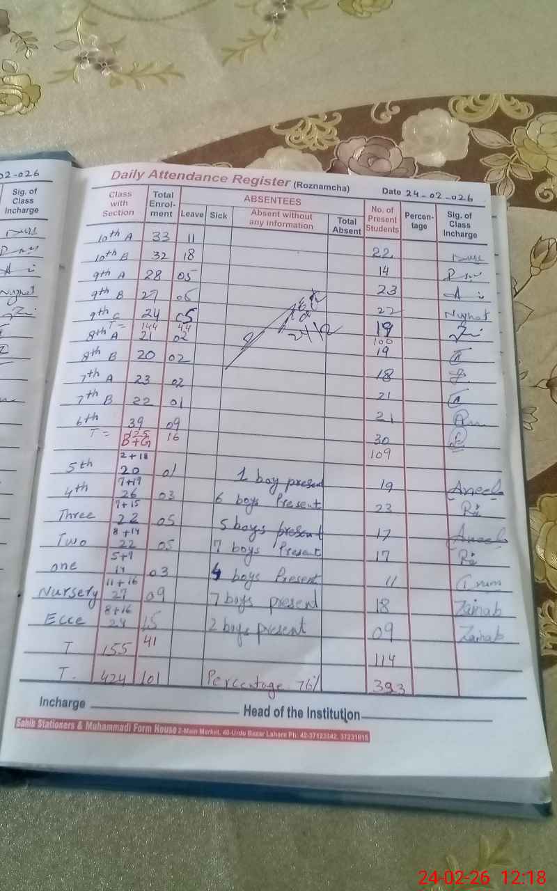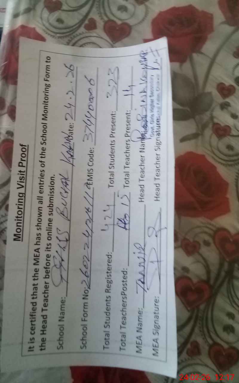 | Attendance Register | Head Teacher | MEA with School | Visit Proof |