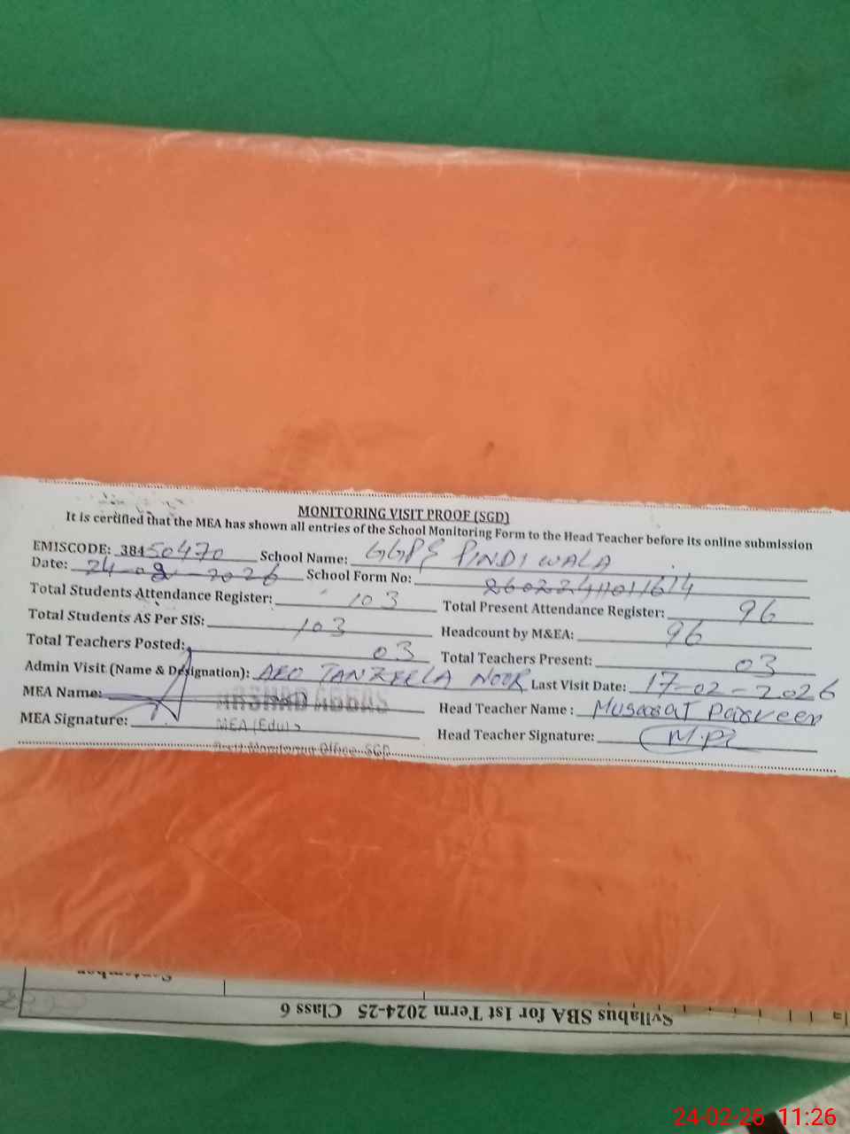 | EMIS Code: 38450470 | Name of School: GGPS PINDI WALA | |||