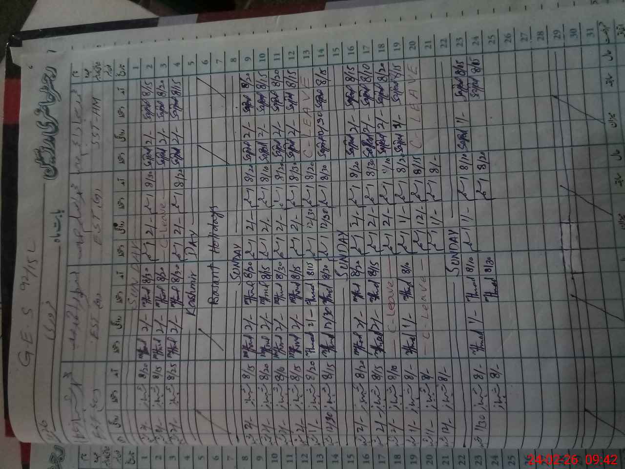 | Leave | Duty | Absent | Maternity | Medical | Ex- Pak |