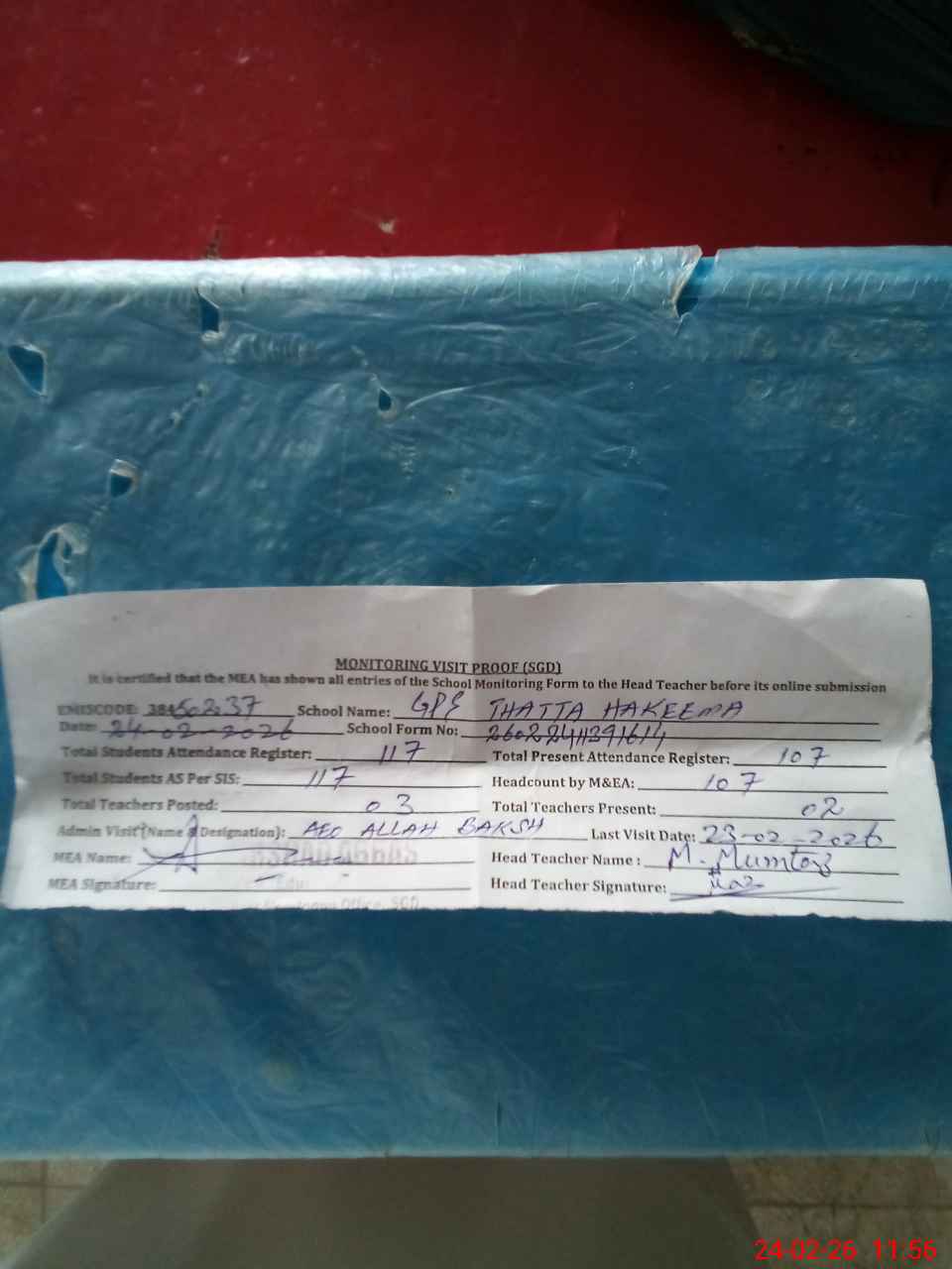 | EMIS Code: 38450237 | Name of School: GPS THATTA HAKEEMA | |||