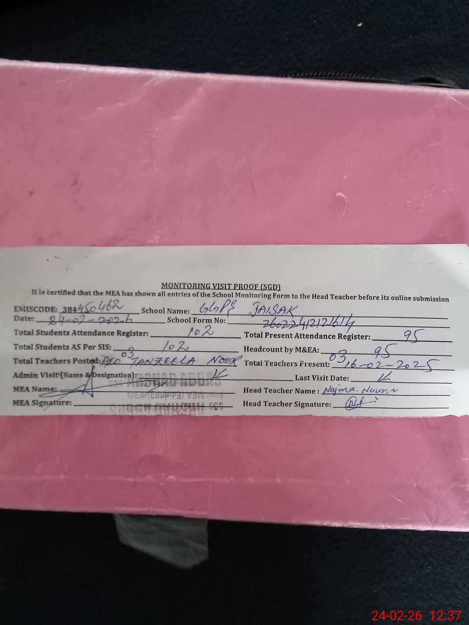 | EMIS Code: 38450462 | Name of School: GGPS JAISAK | |||