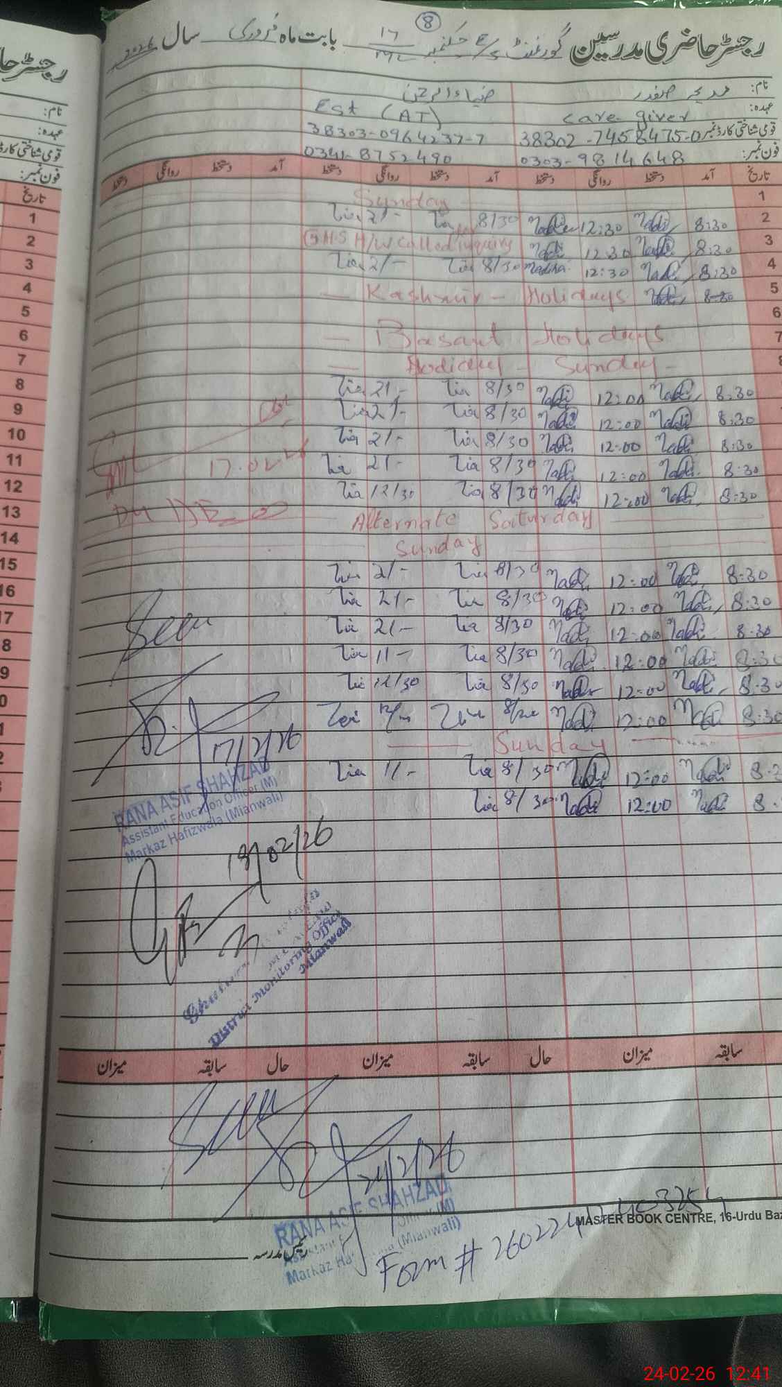 | Name: MIq**** Designation: (School Headmaster's/Headmistress's) EST ( Eng Phone/Cell Number: 03**** |