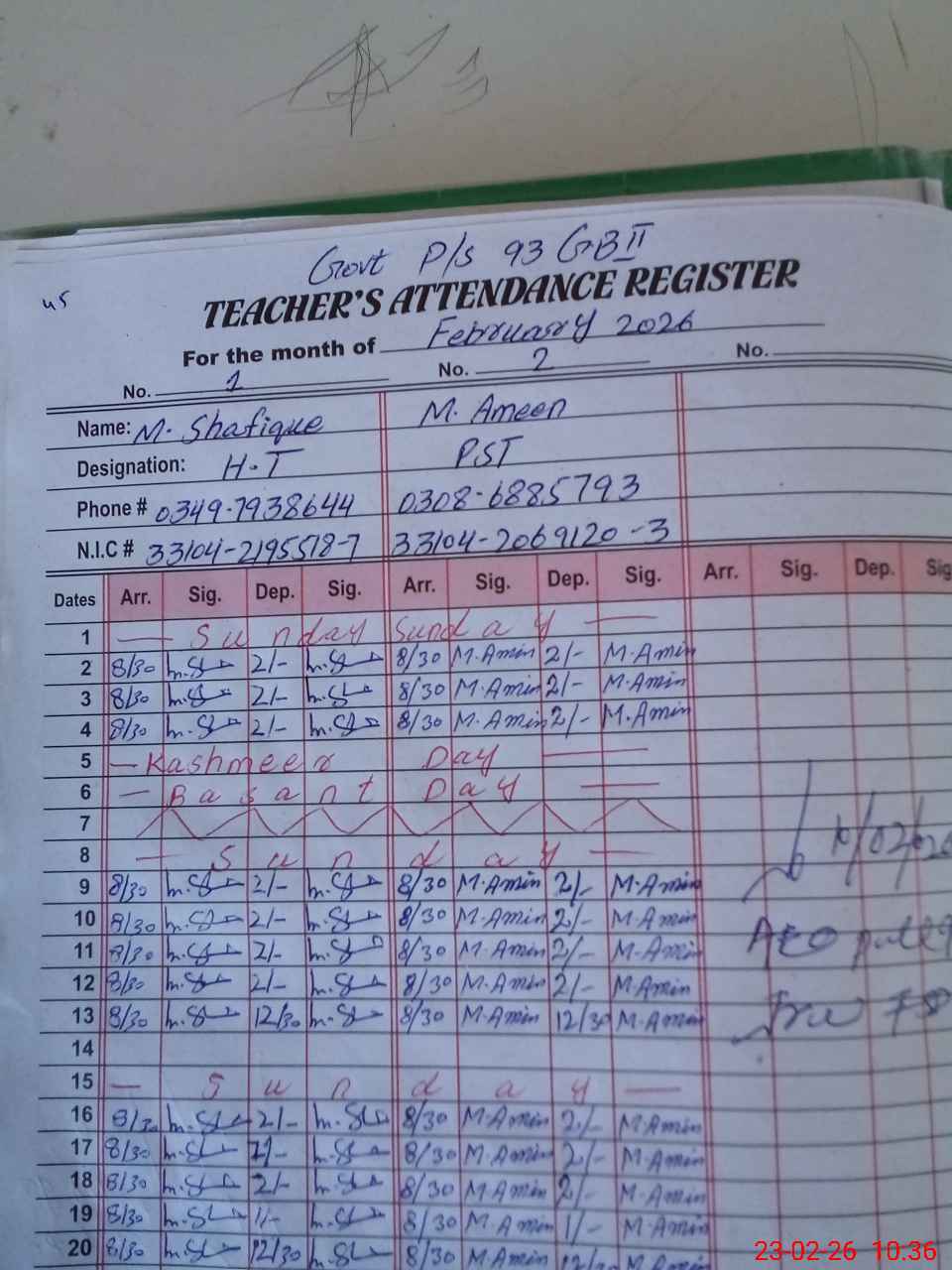 | Name: MU**** SH**** Designation: (School Headmaster's/Headmistress's) PST Phone/Cell Number: 03**** |