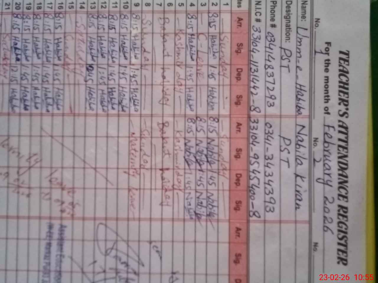 | Name: Um**** Ha**** Designation: (School Headmaster's/Headmistress's) PST Phone/Cell Number: 03**** |