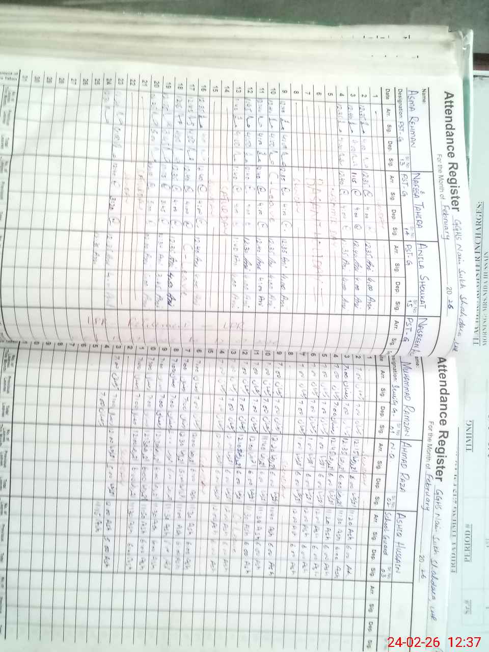 | CNIC | Full Name | Designation | R/C | Absence During Last Calender Month |