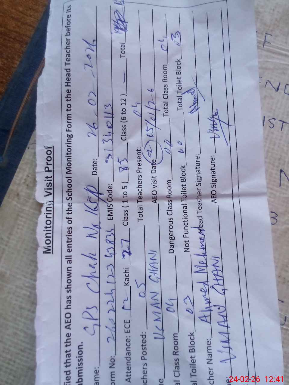 | Name: Mu**** Ah**** Me**** Designation: (School Headmaster's/Headmistress's) PST/PTC/JV Phone/Cell Number: 03**** |