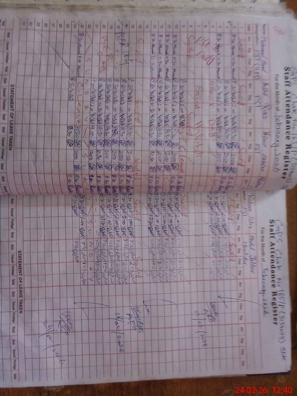 | Leave | Duty | Absent | Maternity | Medical | Ex- Pak |