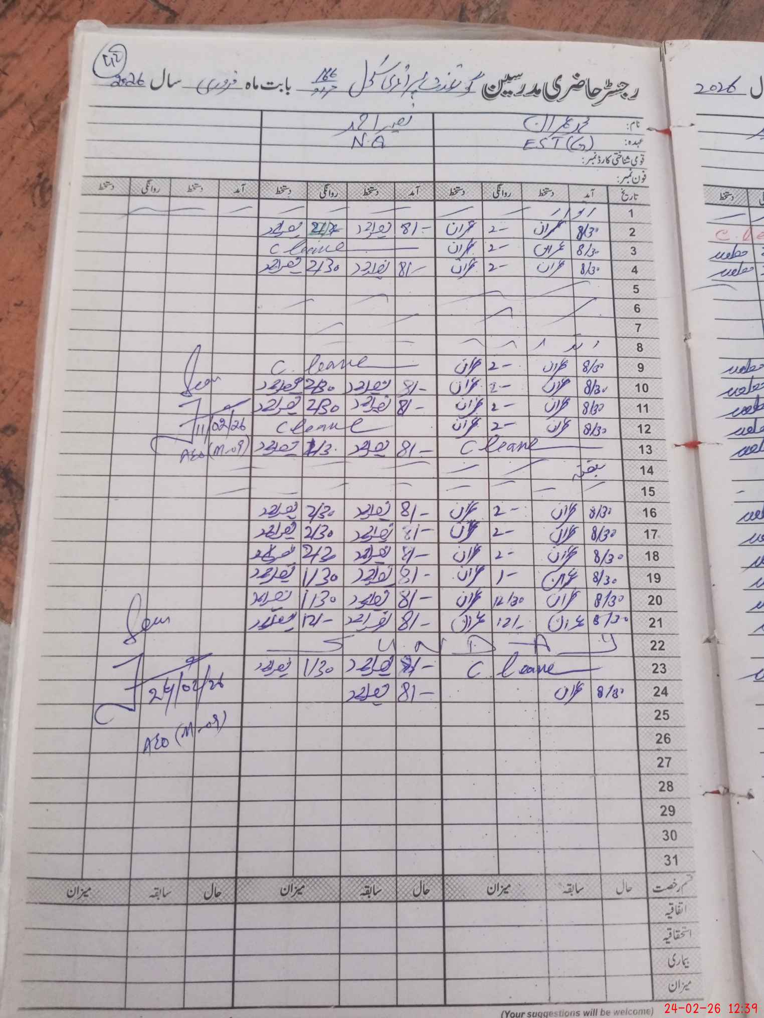 | CNIC | Full Name | Designation | R/C | Absence During Last Calender Month |