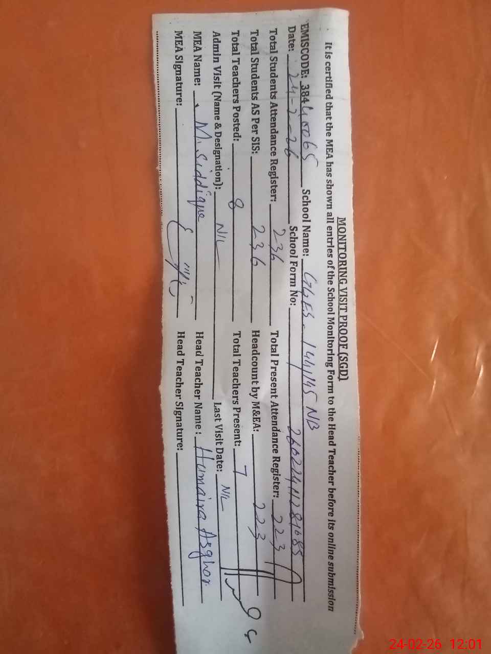 | EMIS Code: 38440065 | Name of School: GGES CHAK NO.144/145 NB | |||