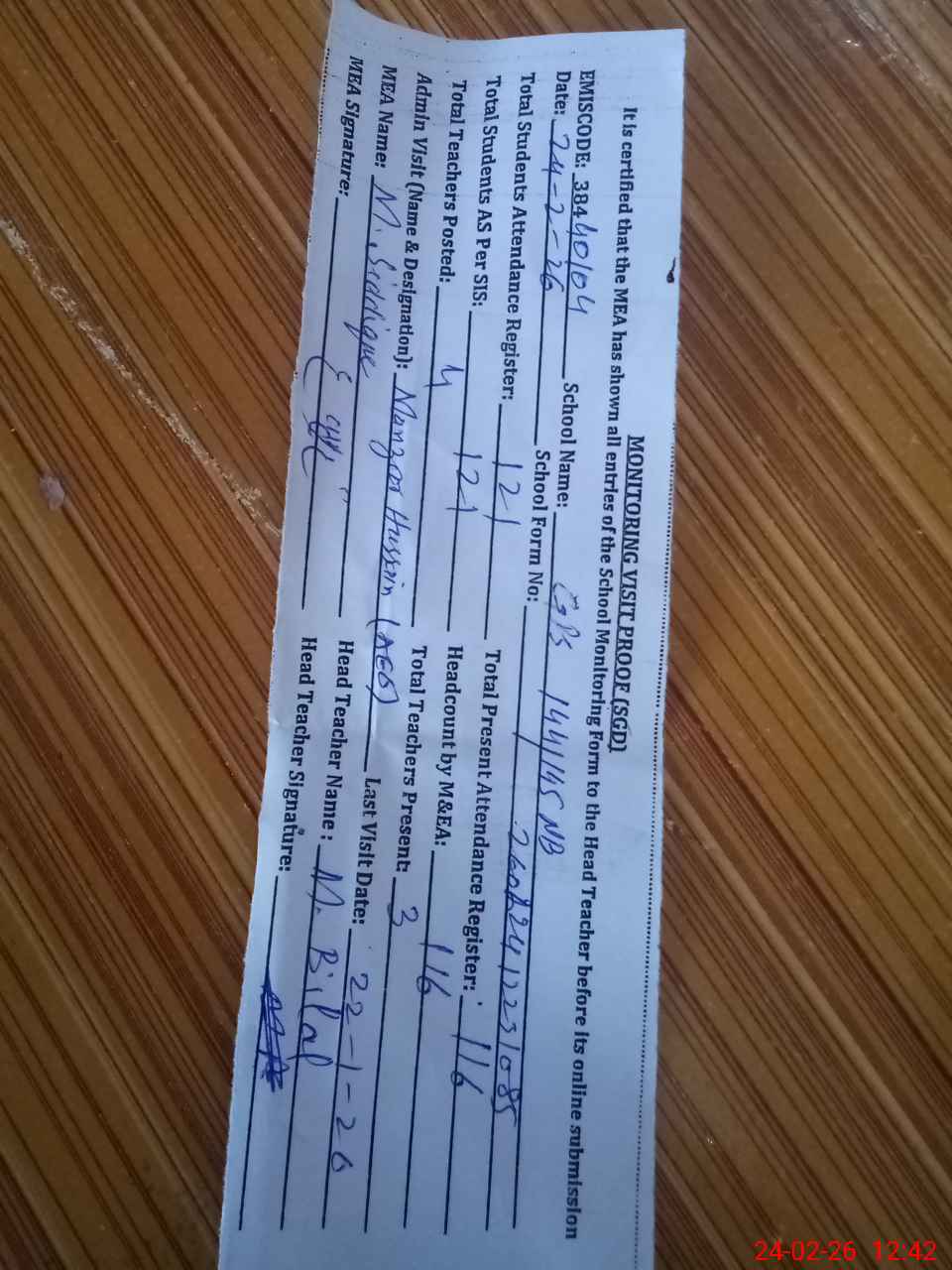| Certified that this School was Inspected by the Undersigned MEA/DMO Today and the Information Stated Above is as Per Record. | |||||