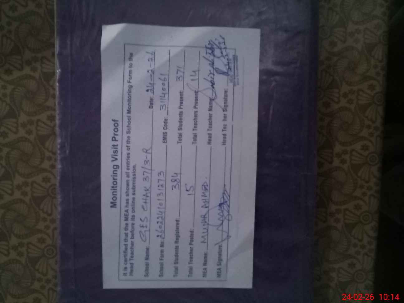 | EMIS Code: 31140061 | Name of School: GES CHAK NO. 37/3-R | |||