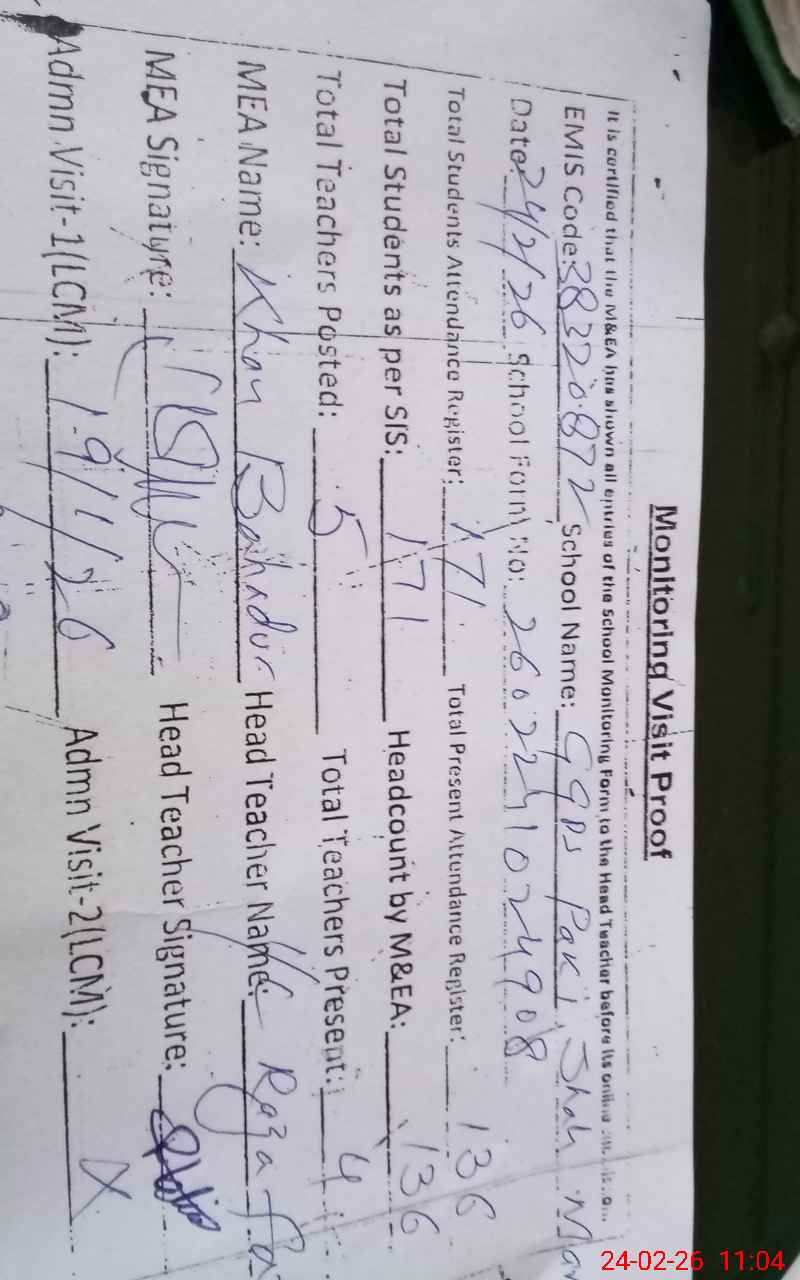 | EMIS Code: 38320872 | Name of School: GGPS PAKKI SHAH MARDAN | |||