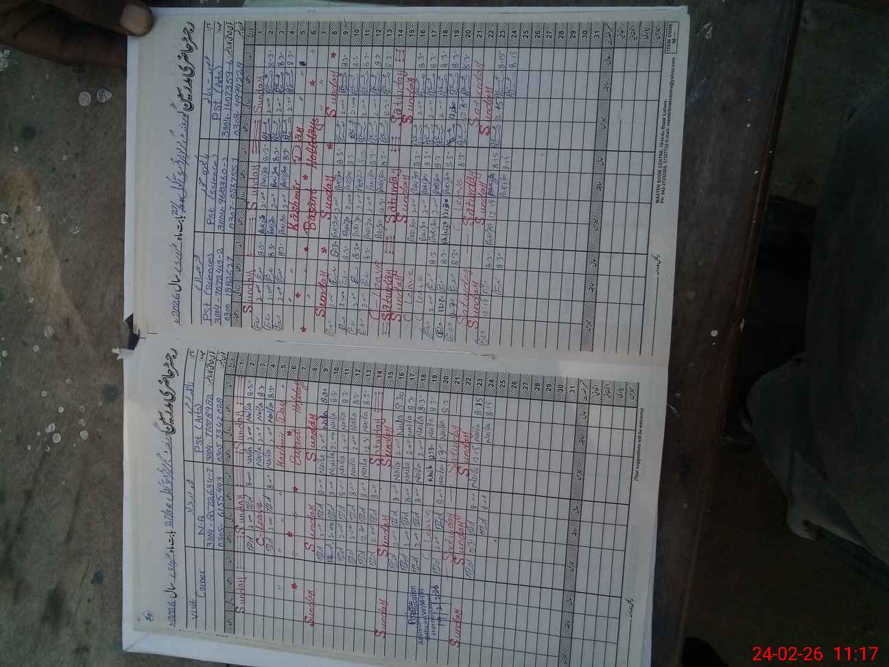 | CNIC | Full Name | Designation | R/C | Absence During Last Calender Month |