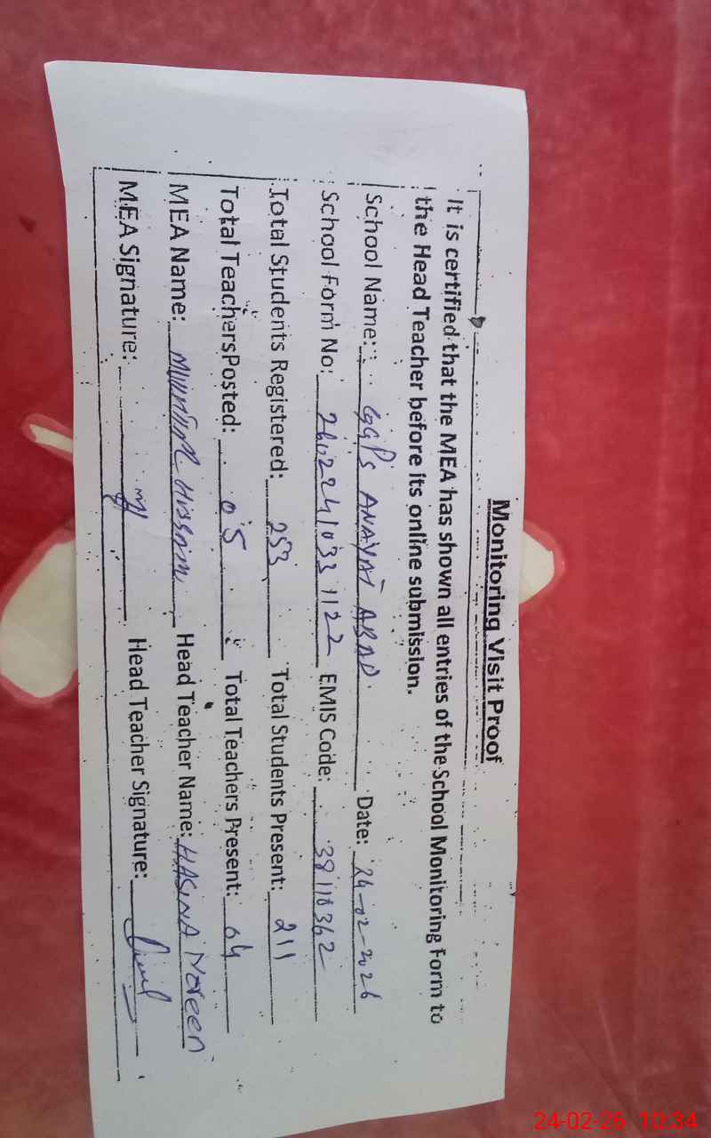 | EMIS Code: 38110362 | Name of School: GGPS ANAYAT ABAD | |||
