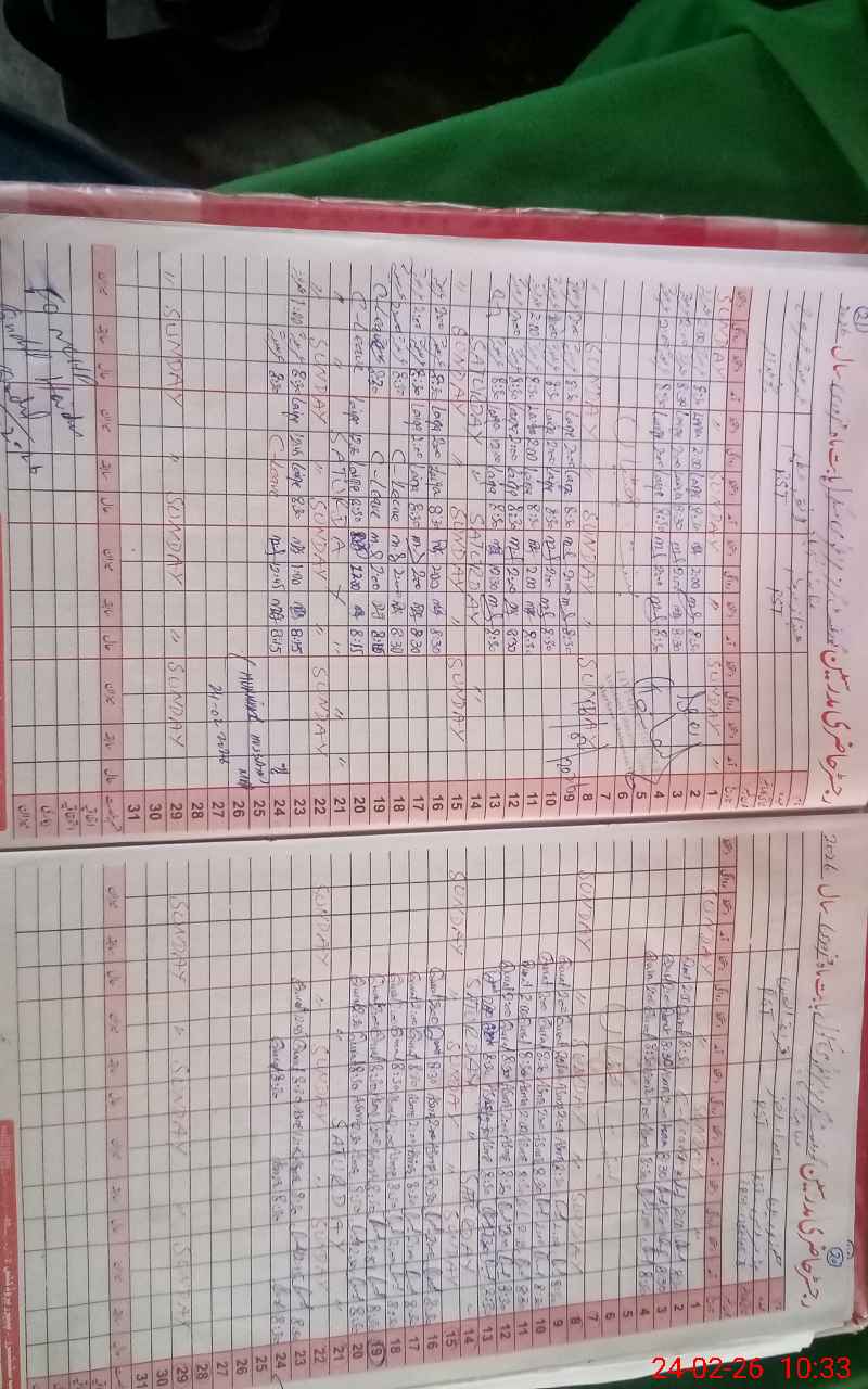 | CNIC | Full Name | Designation | R/C | Absence During Last Calender Month |