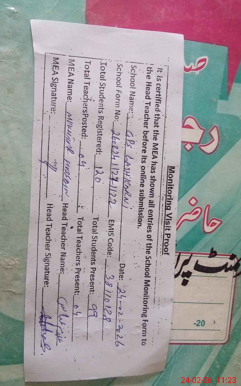 | EMIS Code: 38110128 | Name of School: GPS LASHKARANI | |||