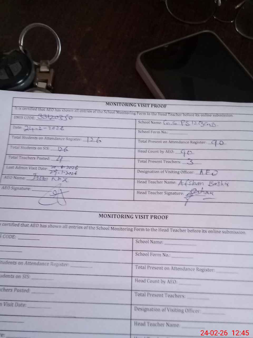 | Attendance Register | Head Teacher | MEA with School | Visit Proof |