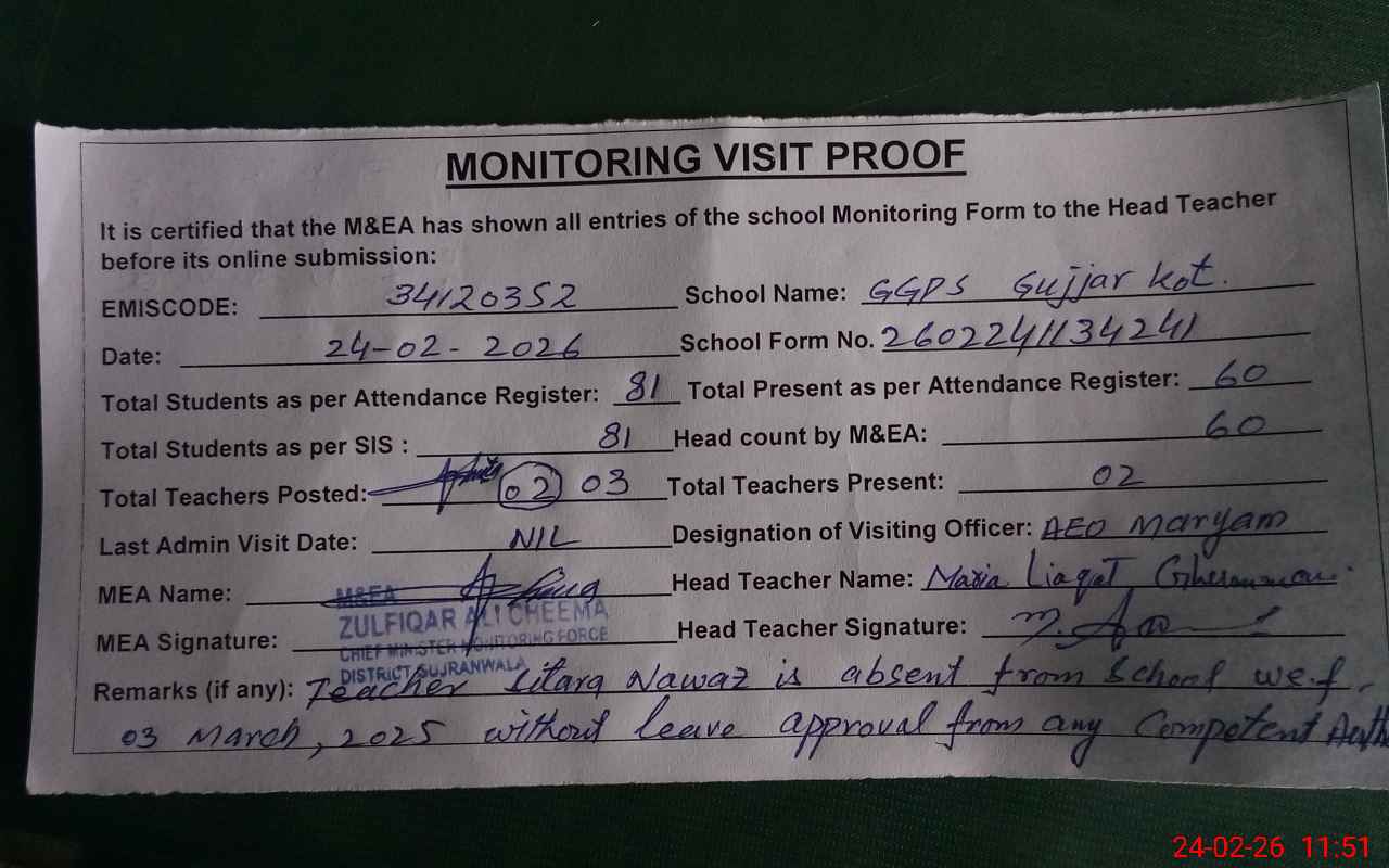| EMIS Code: 34120352 | Name of School: GGPS GUJAR KOT | |||
