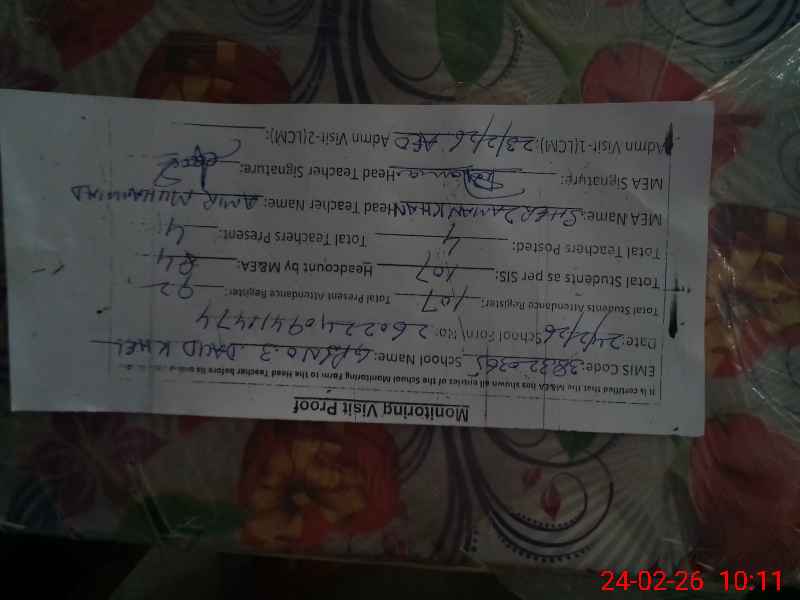 | Certified that this School was Inspected by the Undersigned MEA/DMO Today and the Information Stated Above is as Per Record. | |||||