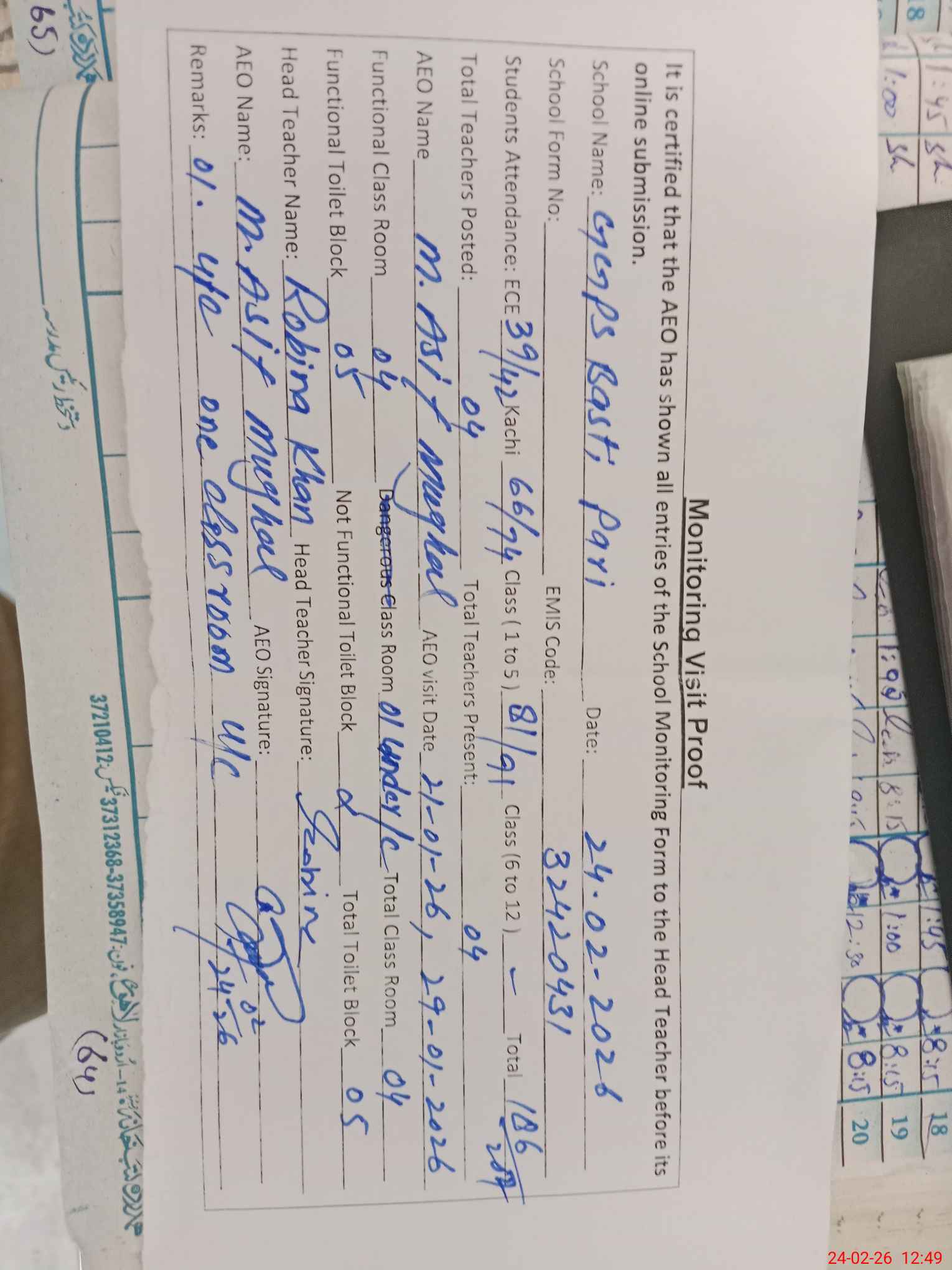 | Certified that this School was Inspected by the Undersigned MEA/DMO Today and the Information Stated Above is as Per Record. | |||||