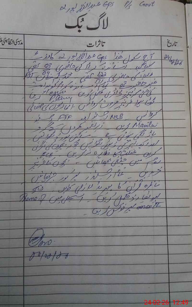 | EMIS Code: 33250185 | Name of School: GPS ABDULLAH PUR NO 2 | |||