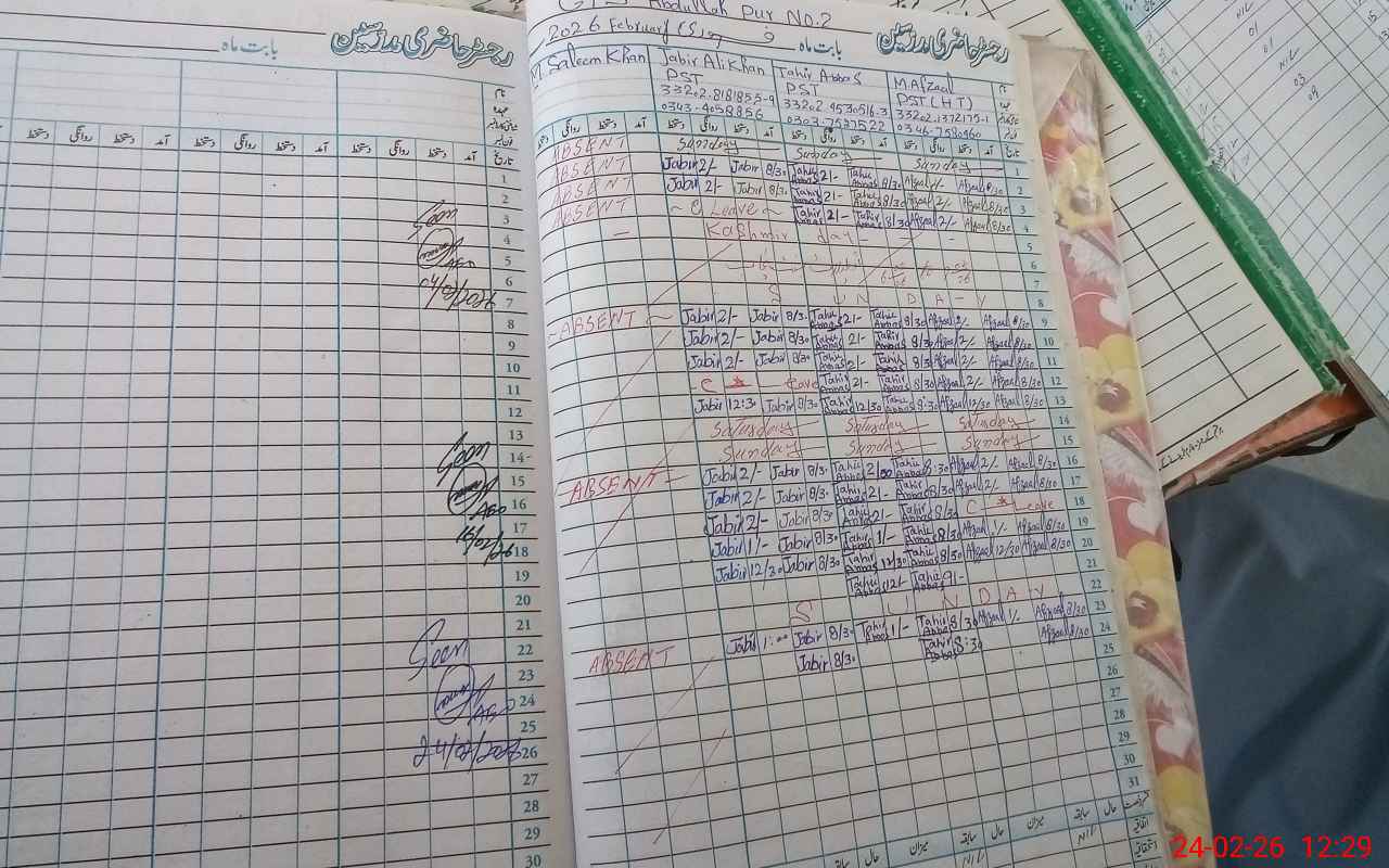| 33**** | Mu**** Sa**** Kh**** | PST Science/Maths | Regular | 0 | 0 | 0 | 0 | 0 | 0 | 0 | 0 | 0 | Absent (Un-Authorized) |