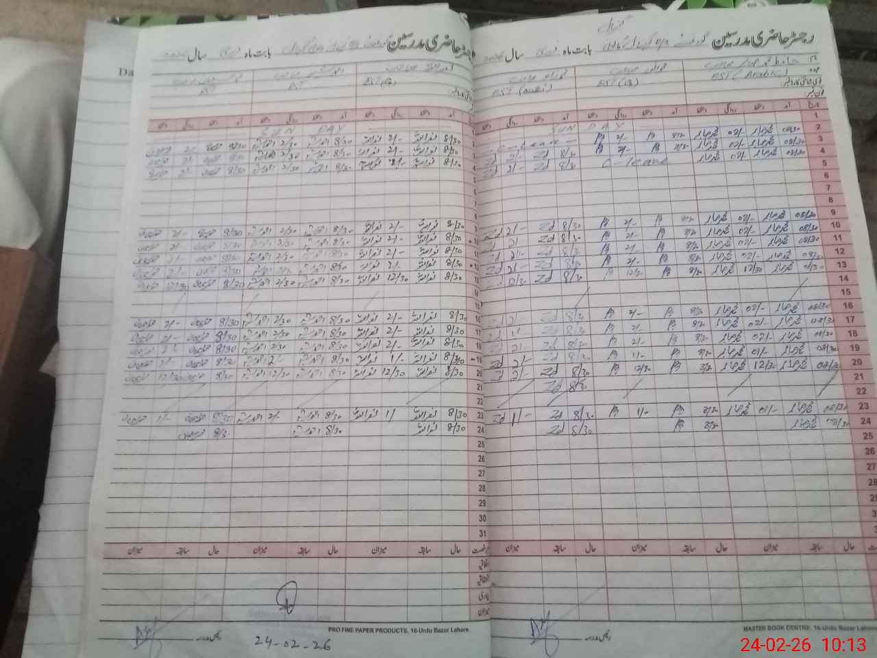 | CNIC | Full Name | Designation | R/C | Absence During Last Calender Month |