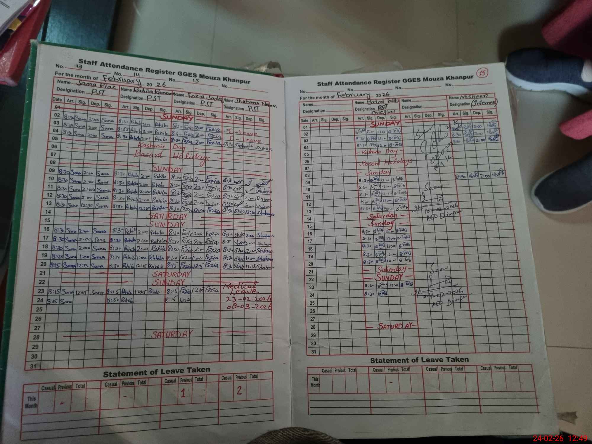 | Leave | Duty | Absent | Maternity | Medical | Ex- Pak |