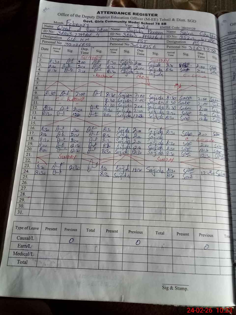 | 38**** | Im**** Kh**** | PST Science/Maths | Regular | 0 | 0 | 0 | 0 | 0 | 0 | 0 | 0 | 0 | Maternity |