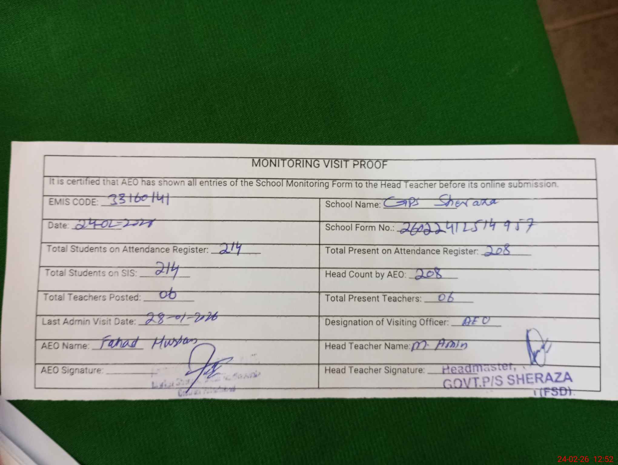 | EMIS Code: 33160141 | Name of School: GPS SHERAZA FATEH SHAH TANDLIANWLA | |||