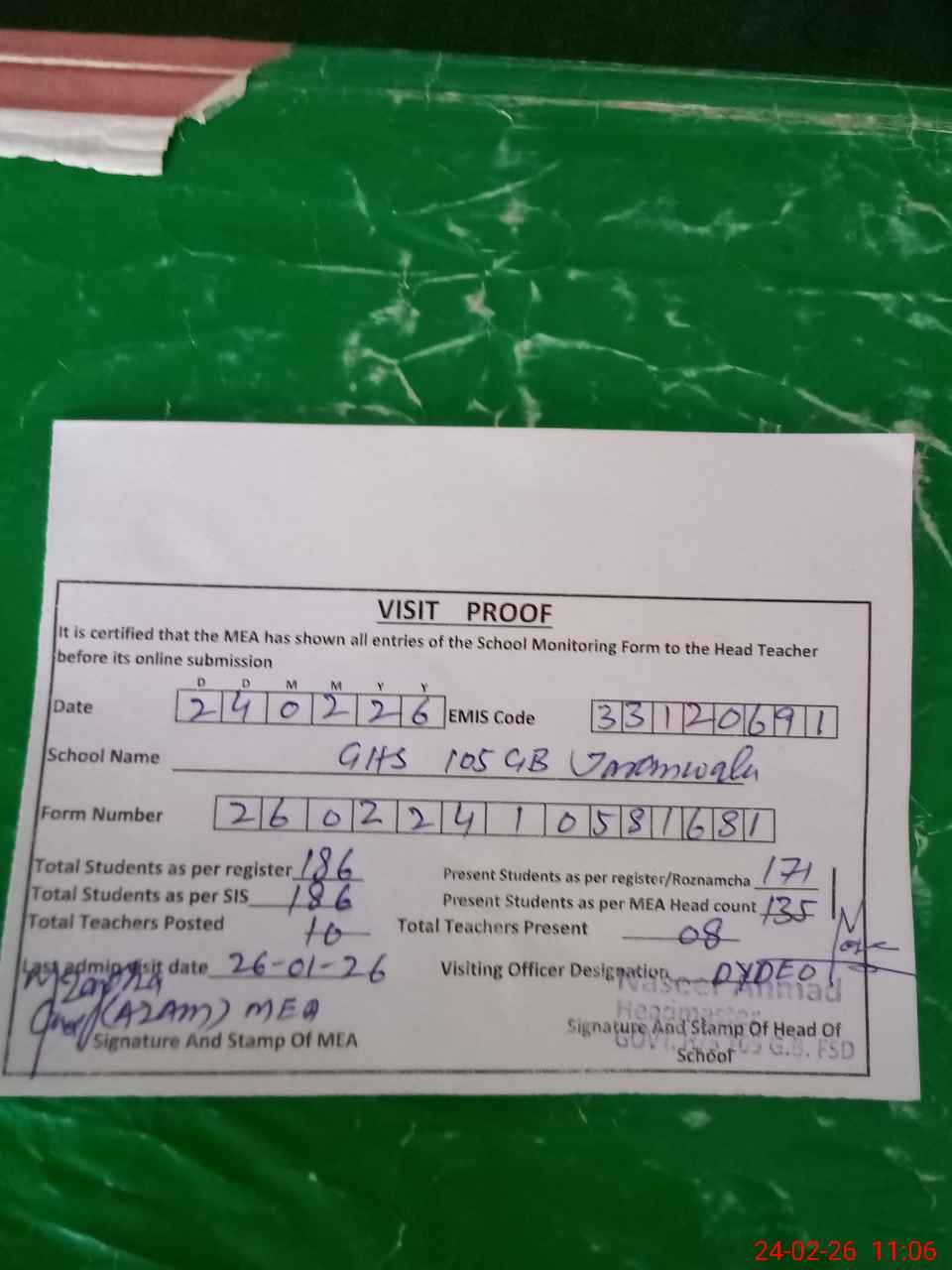 | EMIS Code: 33120691 | Name of School: GHS CHAK NO 105 GB FSD | |||