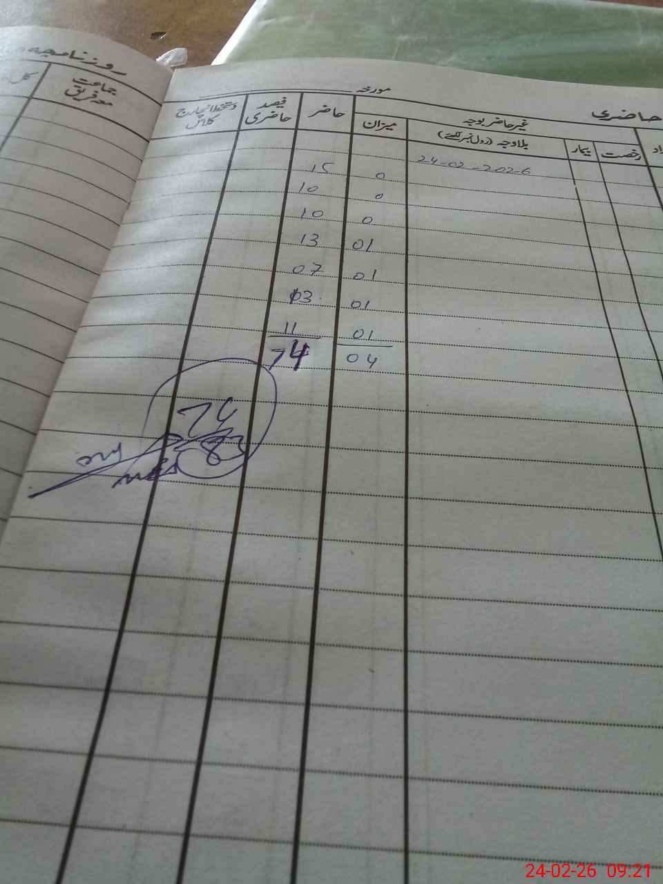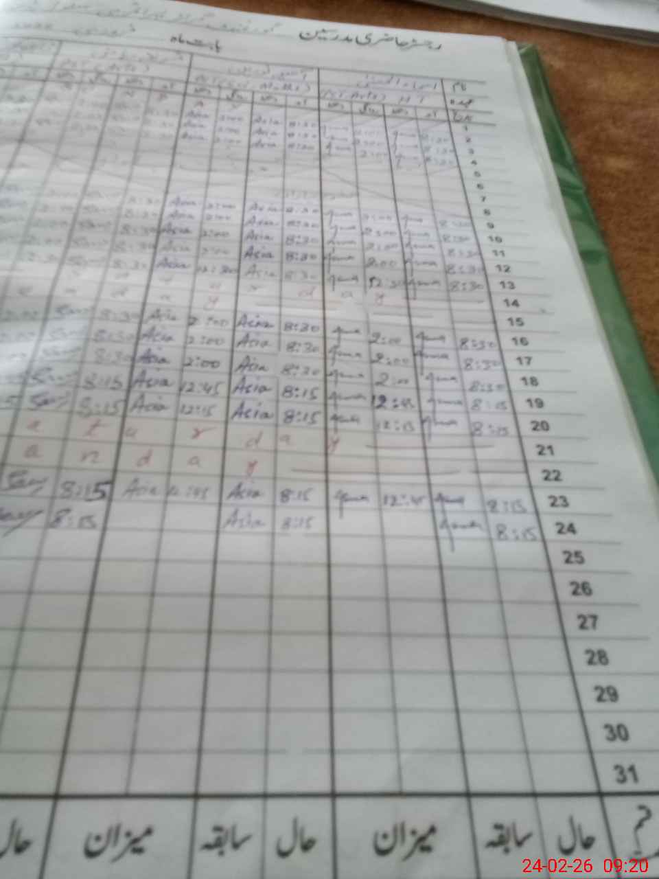 | CNIC | Full Name | Designation | R/C | Absence During Last Calender Month |