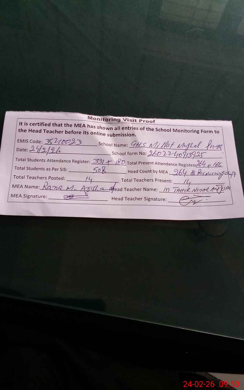 | EMIS Code: 35210023 | Name of School: GHS MILLAT MUGHAL PURA | |||