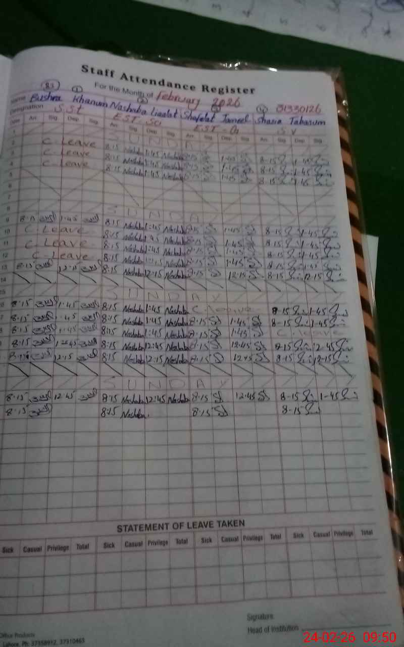 | Name: BU**** KH**** Designation: (School Headmaster's/Headmistress's) S.S.T.(genral) Phone/Cell Number: 03**** |