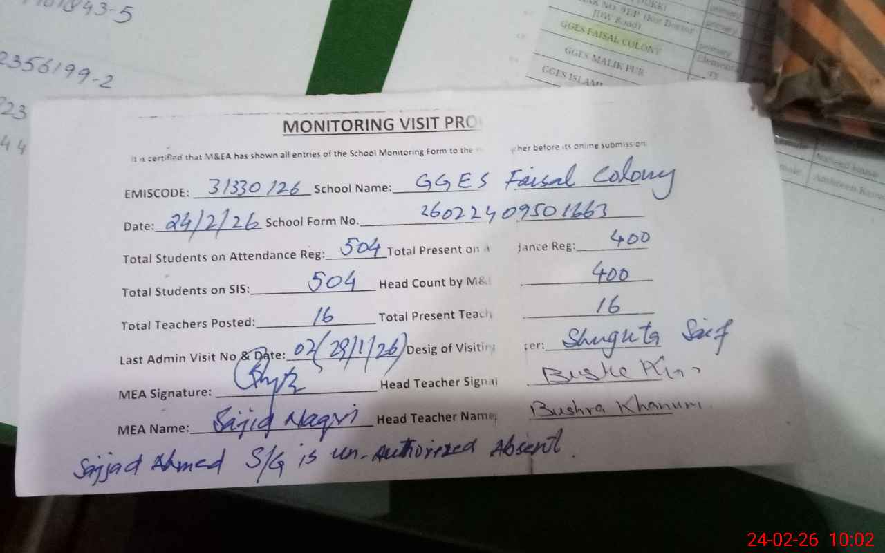 | EMIS Code: 31330126 | Name of School: GGES FAISAL COLONY | |||