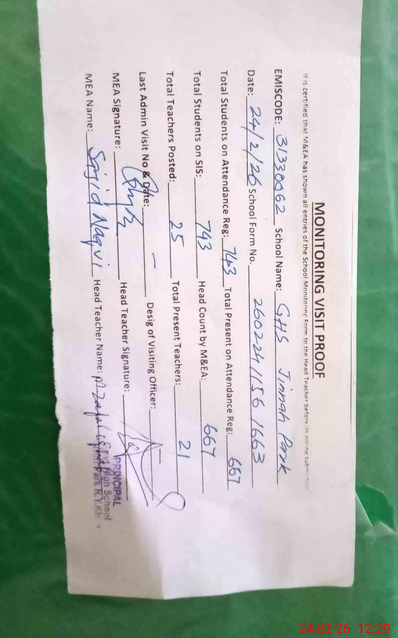 | EMIS Code: 31330062 | Name of School: GHS JINNAH PARK | |||