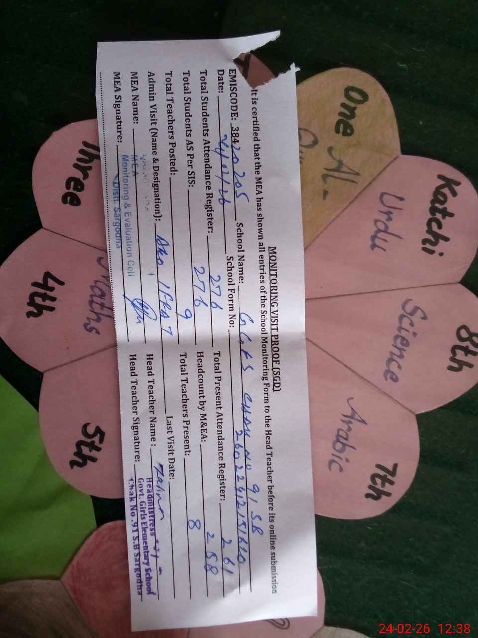 | EMIS Code: 38420205 | Name of School: GGES CHAK NO.91 SB | |||
