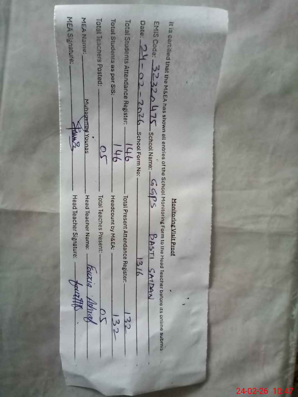 | EMIS Code: 32320475 | Name of School: GGPS BASTI SAIDAN | |||