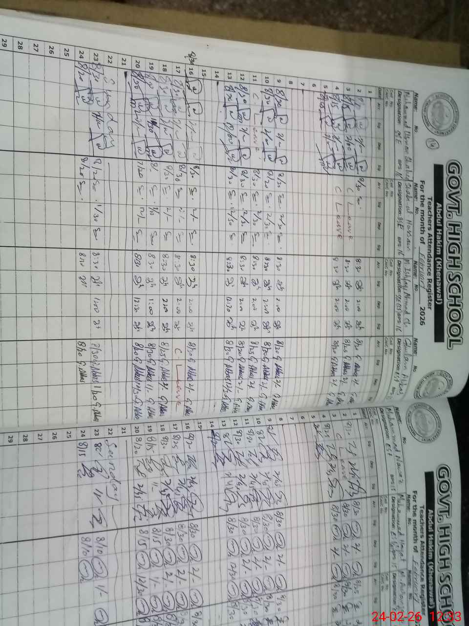 | CNIC | Full Name | Designation | R/C | Absence During Last Calender Month |