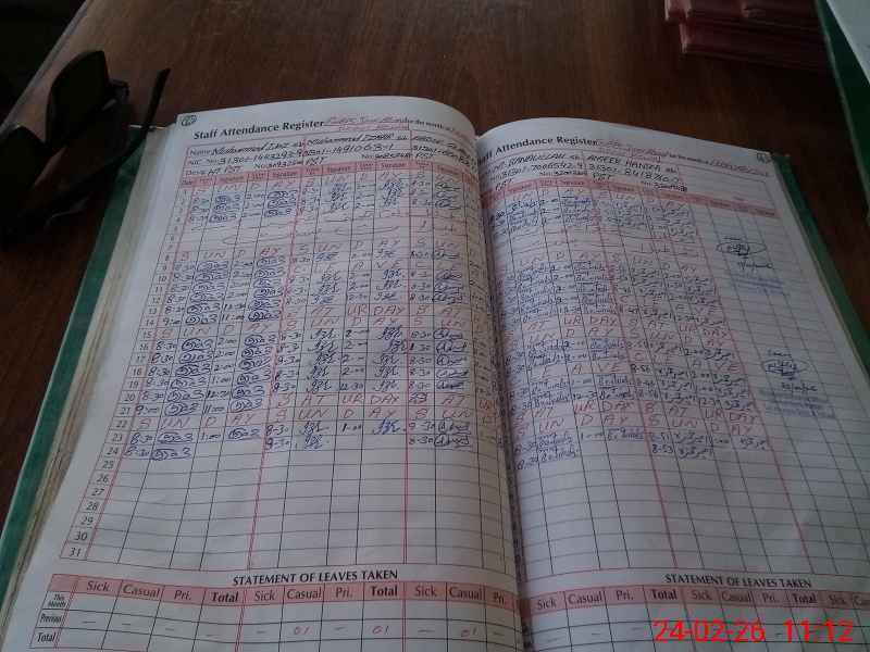 | CNIC | Full Name | Designation | R/C | Absence During Last Calender Month |