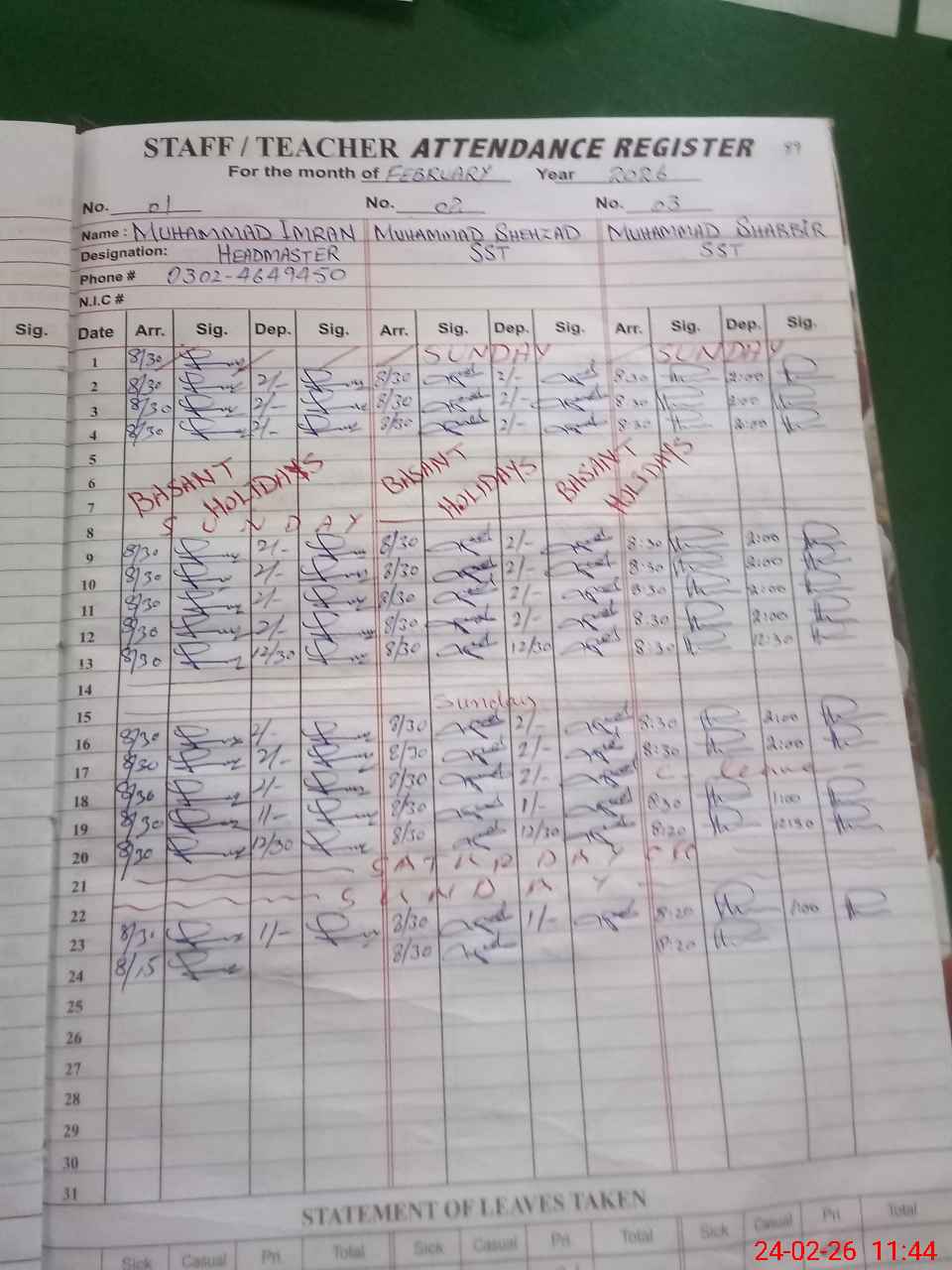 | Name: Mu**** Im**** Designation: (School Headmaster's/Headmistress's) Headmaster Phone/Cell Number: 03**** |