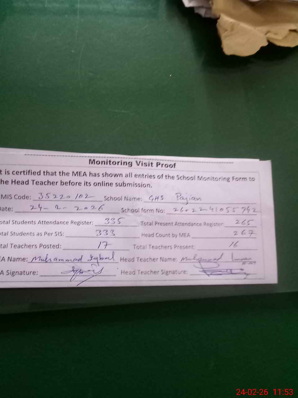 | Certified that this School was Inspected by the Undersigned MEA/DMO Today and the Information Stated Above is as Per Record. | |||||
