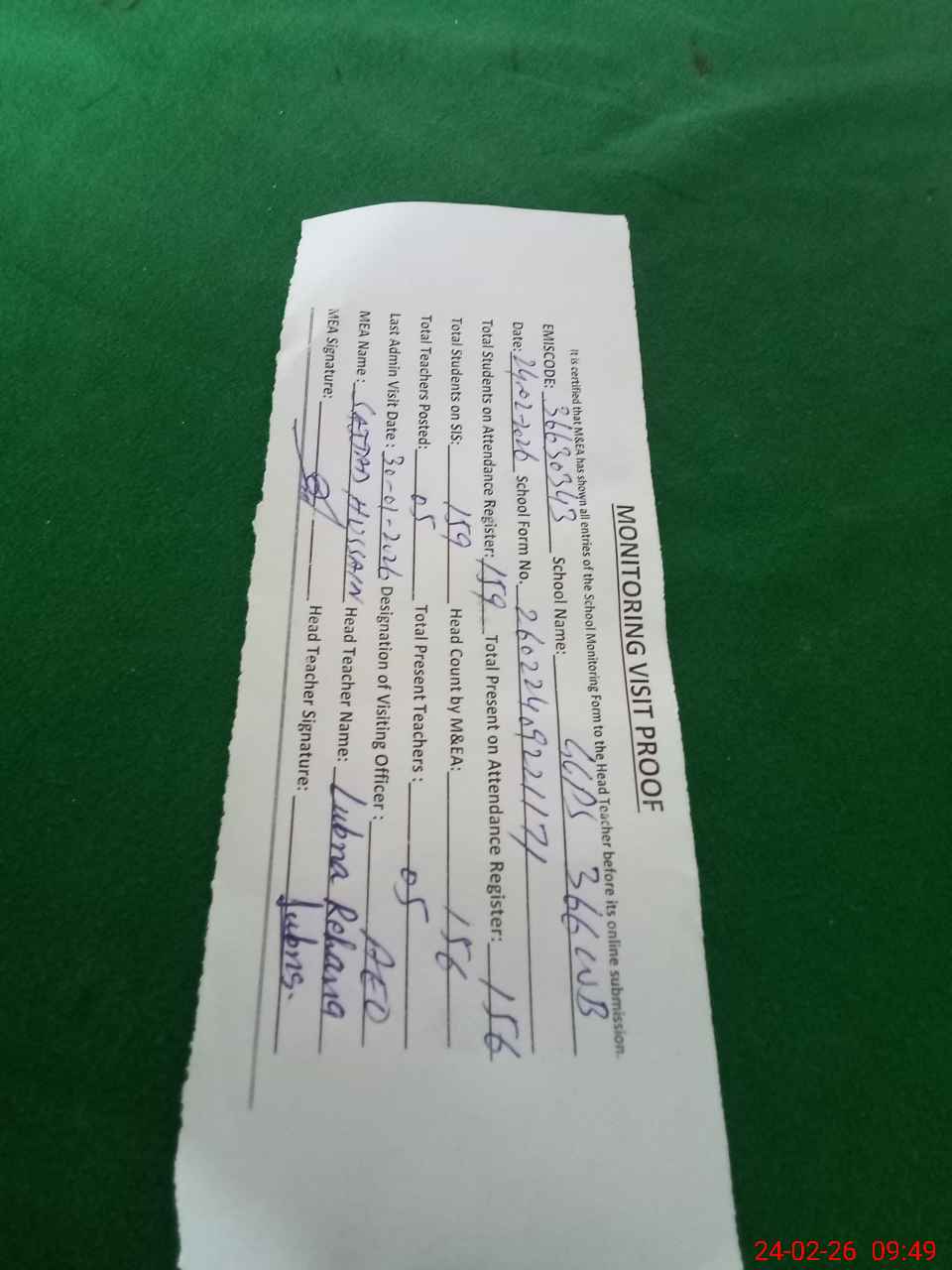 | Certified that this School was Inspected by the Undersigned MEA/DMO Today and the Information Stated Above is as Per Record. | |||||