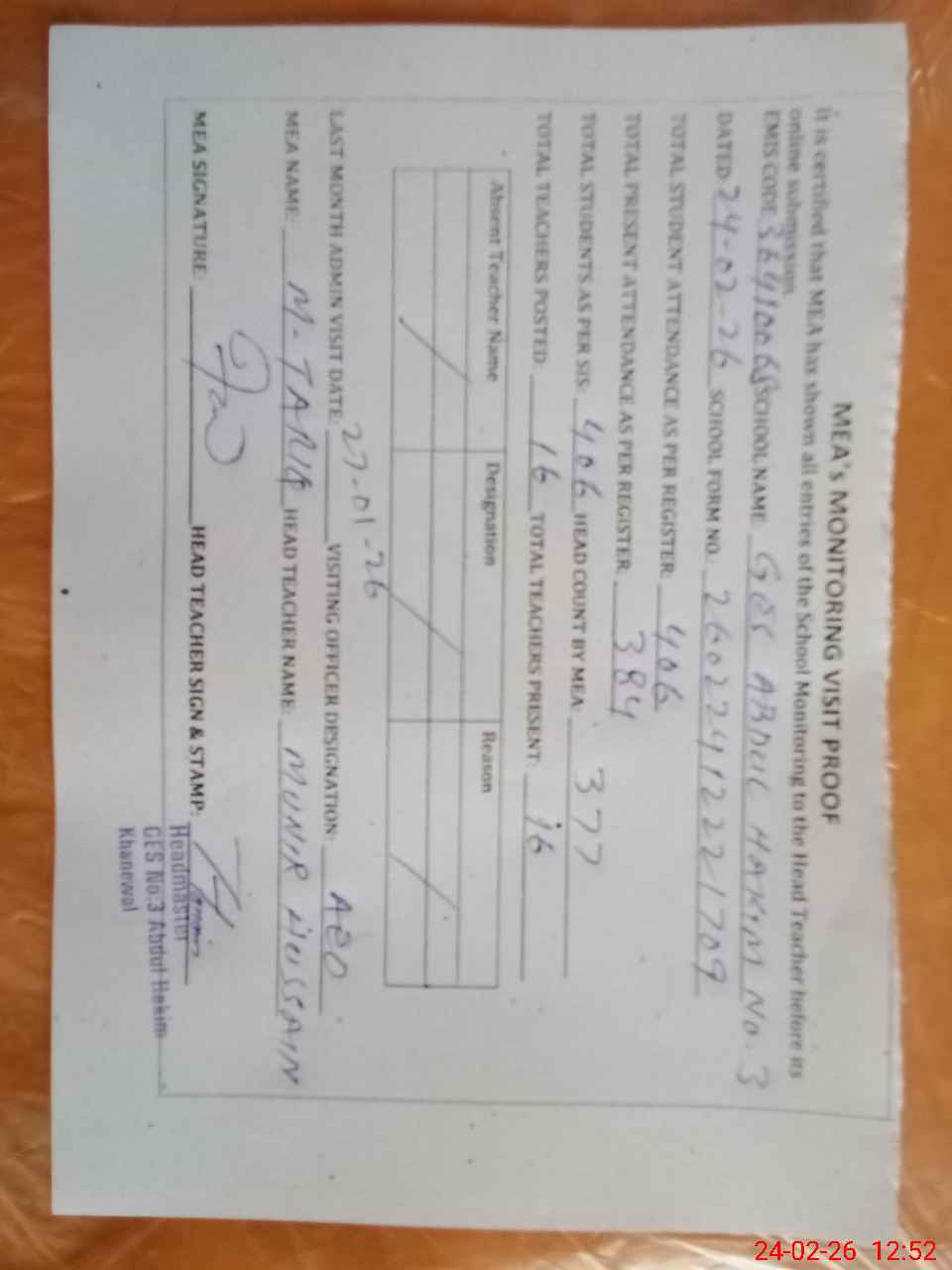 | EMIS Code: 36410068 | Name of School: GES ABDUL HAKIM NO.3, ABDUL HAKIM | |||