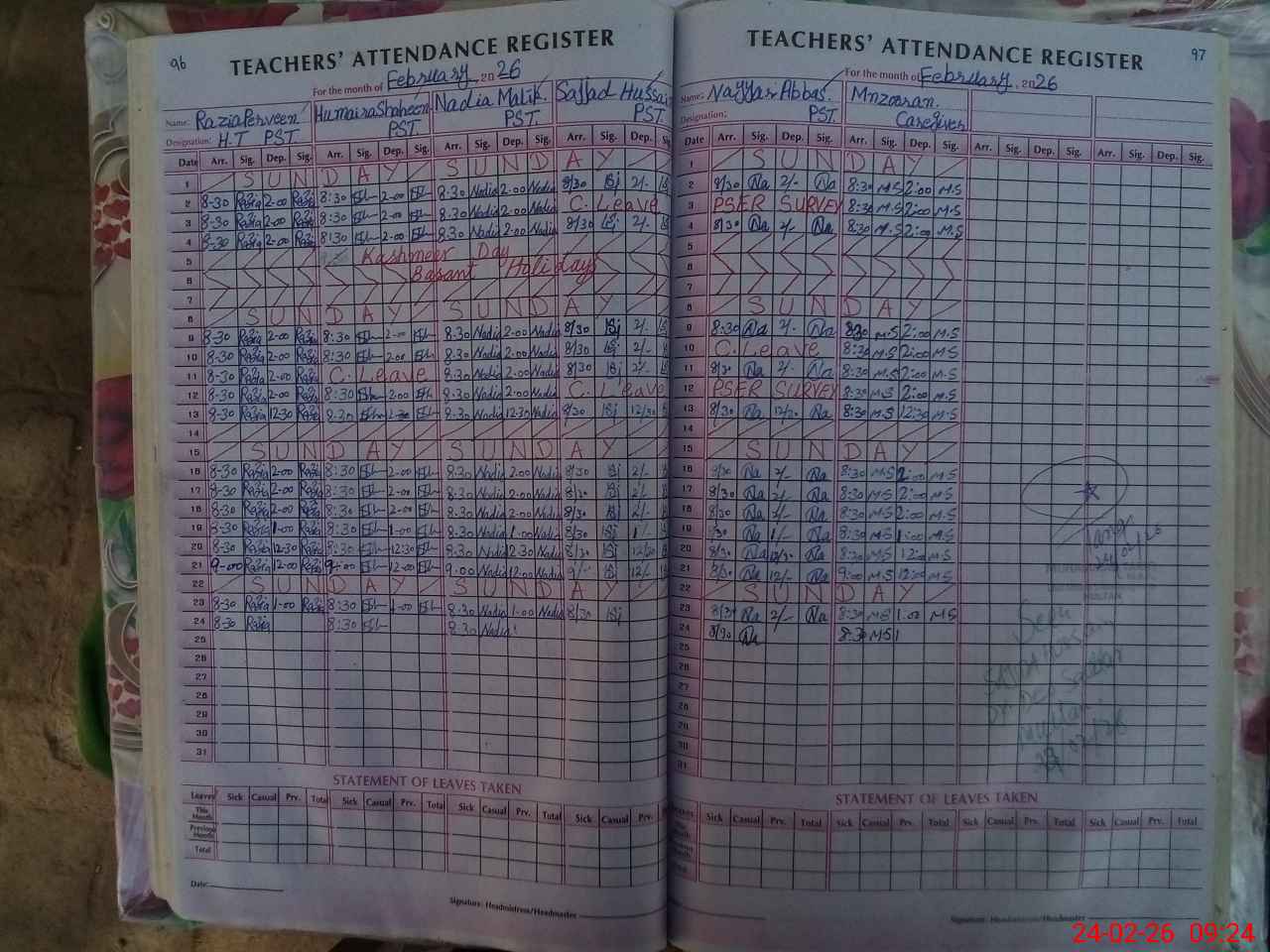 | 36**** | Sa**** Hu**** | PST Arts | Regular | 0 | 0 | 0 | 0 | 0 | 0 | 0 | 0 | 0 | Absent (Un-Authorized) |