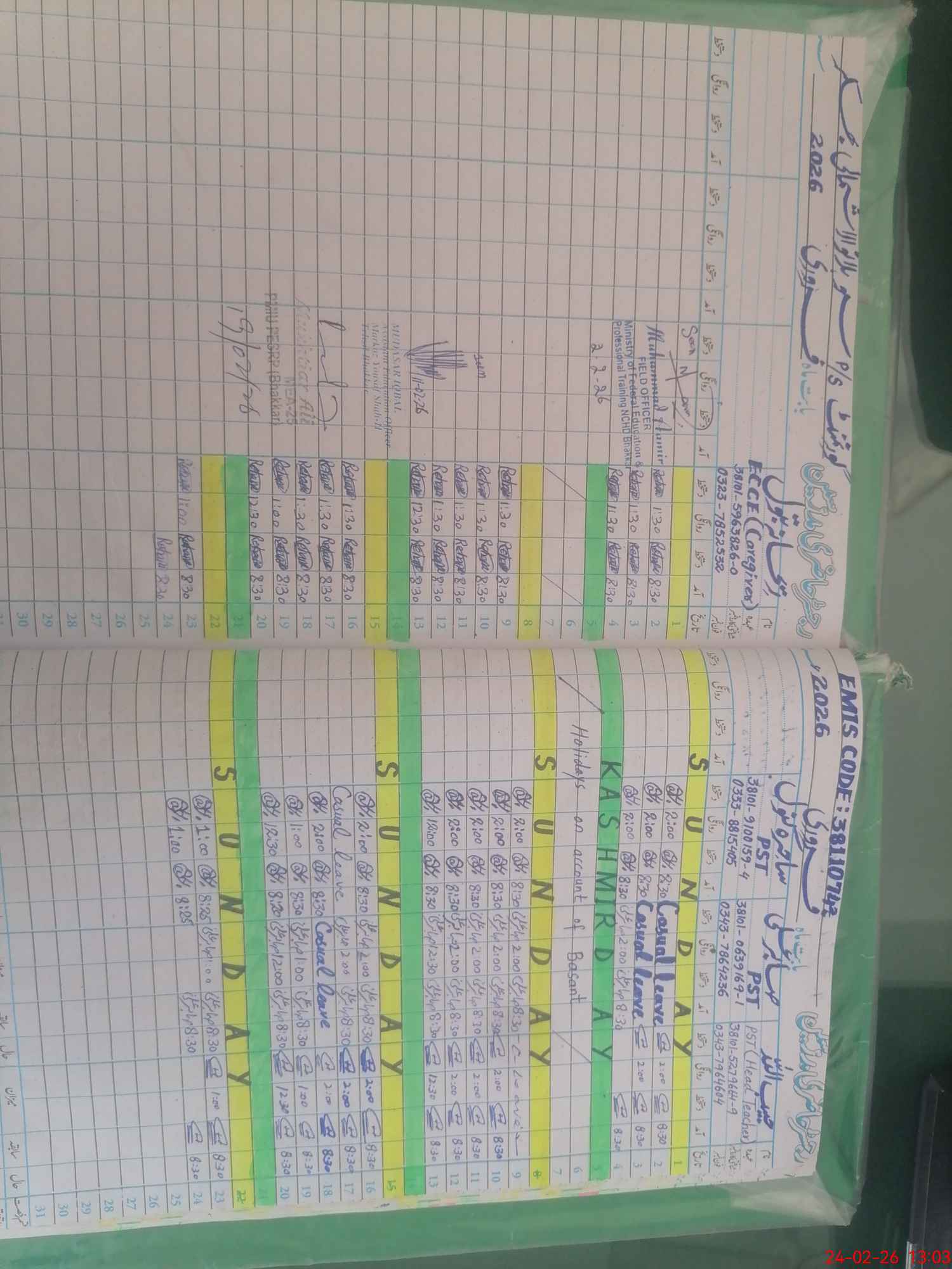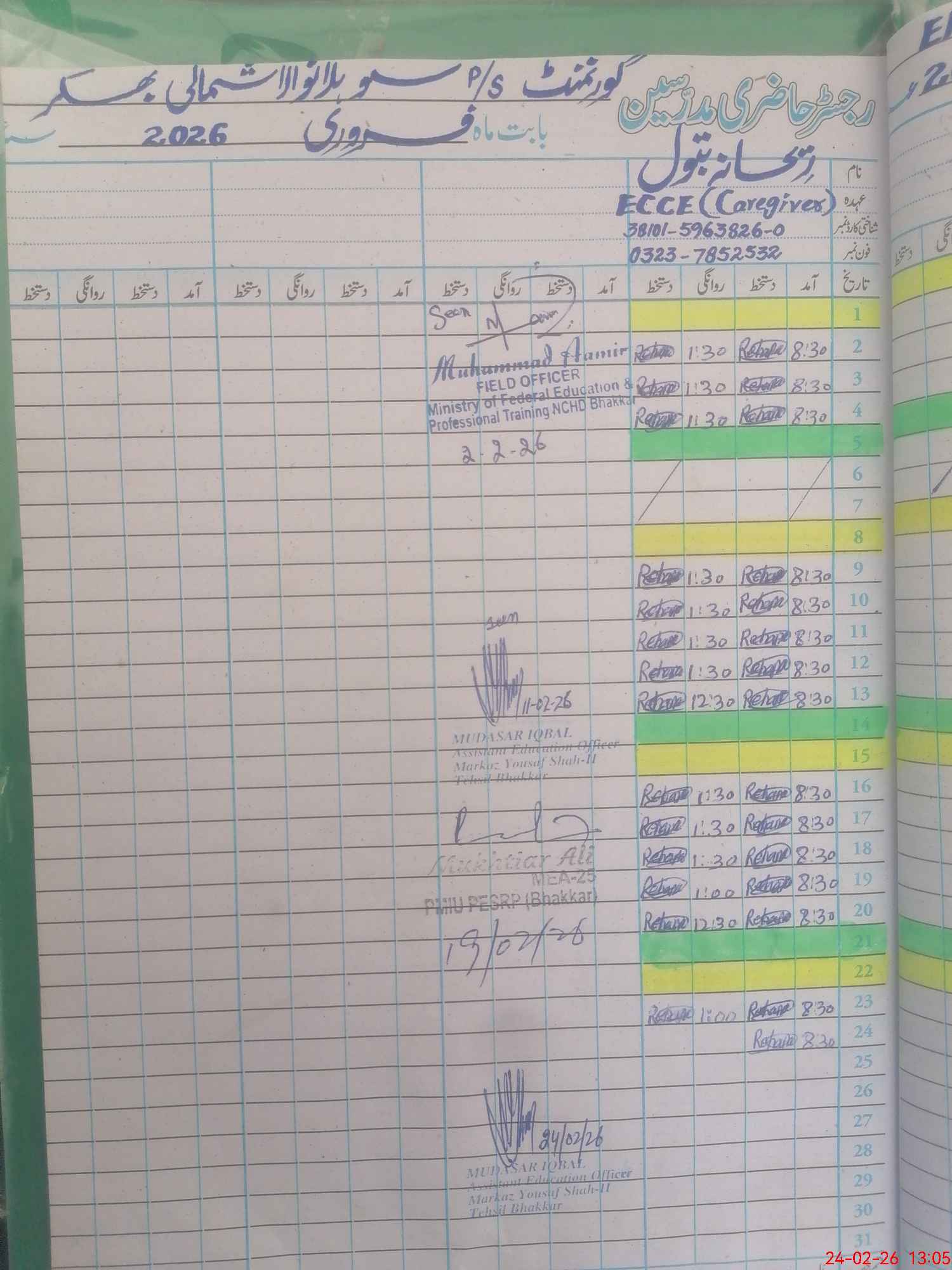 | CNIC | Full Name | Designation | R/C | Absence During Last Calender Month |