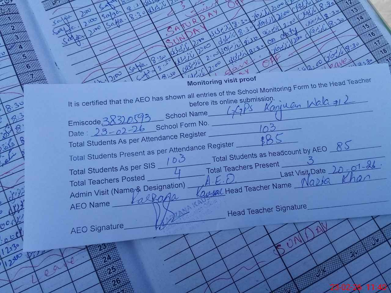 | EMIS Code: 38320593 | Name of School: GGPS KANJUAN WALA NO. 2 | |||