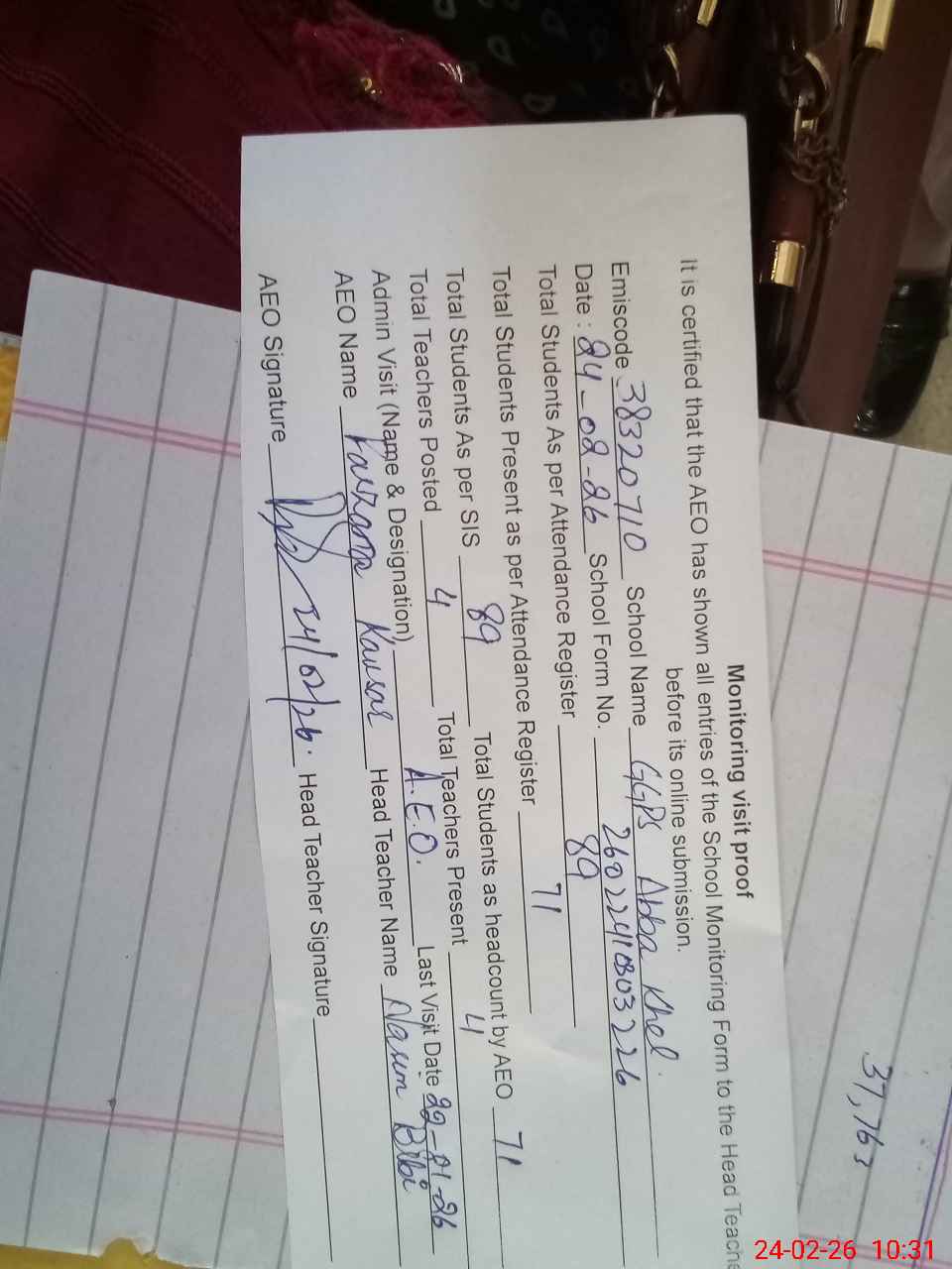 | EMIS Code: 38320710 | Name of School: GGPS ABBA KHEL | |||