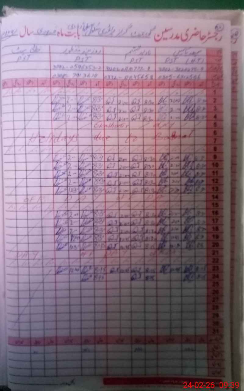 | CNIC | Full Name | Designation | R/C | Absence During Last Calender Month |