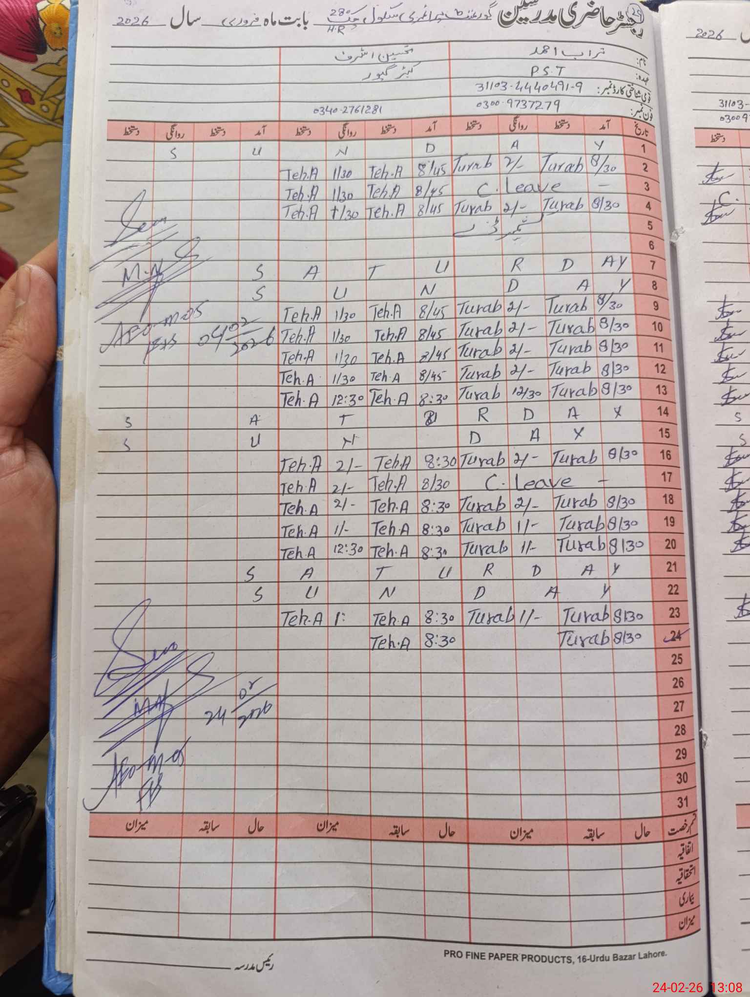 | Name: M.**** Designation: (School Headmaster's/Headmistress's) PTC/JV Phone/Cell Number: 03**** |